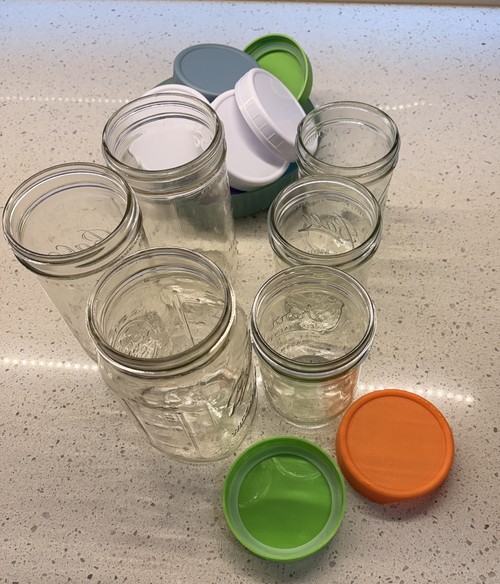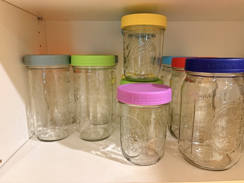 Then I remembered I have a slew of 'Mason jars' that I use to store dry foods like rice, pasta, raisins, and homemade soy and almond milk.