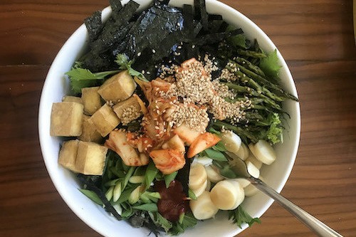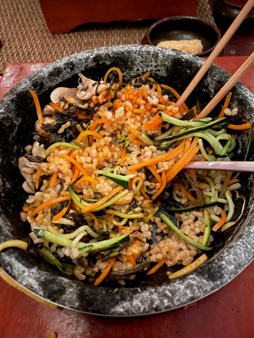I ended up at HanGawi (highly recommend for a memorable and upscale vegan dining experience) and enjoyed their kimchi Bibimbap: